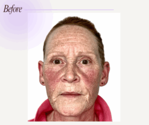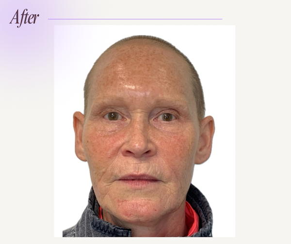 Four months into her treatment plan, significant improvements were visible. To further enhance skin texture and elasticity, Cy underwent a course of Sunekos® treatments, consisting of 1x 1200 and 3x 200 sessions spaced 1-2 weeks apart. This patented blend of Hyaluronic Acid and Amino Acids stimulated collagen and elastin production, promoting healthier skin.